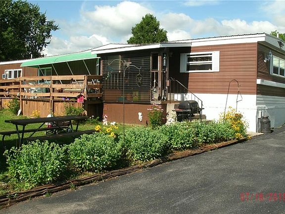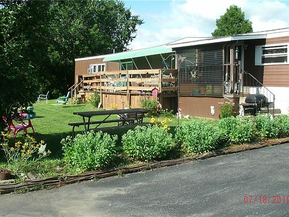 This well cared for manufactured home features large living room, eat-in kitchen, two nicely sized bedrooms - each with its own bath. Stick built addition provides extra space to living room and provides for storage area/mudroom space. The nicely sized 2.34 acre lot is a quiet setting with apple trees, lilac bushes, perennials, berry bushes and an artisan well. Paved driveway and detached garage with two bays, plus additional shed for storage. You will enjoy the fantastic view from the deck - You can see Lake Ontario! Great home or great place to build a new home. Just 10 minutes to Watertown or Adams and just one minute to US RTE 11. Call for more information!