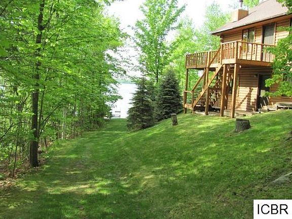 Up north at it finest! Extremely well built and maintained 3 bedroom log home nestled on the shores of Sugar Lake with excellent sugar sand beach and gentle elevation. Surrounded by 1000's of acres of public land and just over a mile from Sugar Lake Lodge. Boat to the resort for 18-holes of golf, restaurants, etc. Energy efficient with forced air furnace, electric baseboard, and cozy wood burning fireplace. Large wrap around deck and minimal maintenance landscaping. Sugar Lake is known for its excellent walleye fishing, signature aqua marine color, and outstanding water clarity.