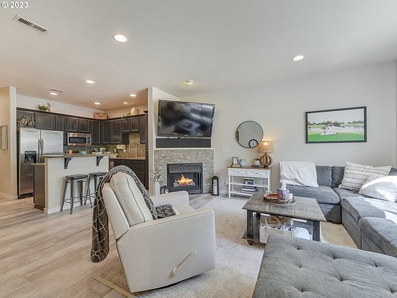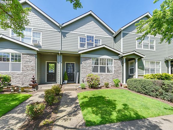 Beautifully remodeled air conditioned townhouse with two nice sized master ensuites - both with vaulted ceilings. 2.5 baths. Gas Fireplace in living room. Laundry off kitchen. Washer and Dryer included. Two car garage with storage racks. Great walking areas, and 1/2 Mile from Tualatin Park. You won't want to miss this!