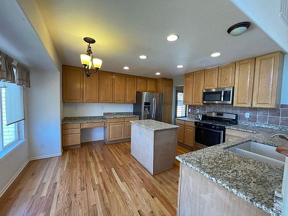 Welcome to this spacious and elegant home, offering 6 bedrooms, 4 baths, and 3,398 finished square feet in Tuscany, a beautiful master-planned community with pool and multiple tennis courts. As you enter, the living room/dining room space is adorned with charming plantation shutters as well as gleaming hardwood floors, adding a touch of sophistication. The vaulted family room is a highlight, featuring a cozy gas fireplace and a stunning wall of windows that flood the space with natural light. The well-appointed kitchen boasts a central island, granite countertops, stainless steel appliances, a breakfast nook, and a large pantry, perfect for all your culinary needs. The primary bedroom is a luxurious retreat with a vaulted ceiling, a large 5-piece bath, and a walk-in closet. There is a main floor bedroom that could double as a home office. Step outside to enjoy the expansive deck with a trellis, ideal for outdoor entertaining and relaxation. The fully finished walkout basement adds to the home's appeal, offering two additional bedrooms and multiple recreation room spaces, perfect for a variety of activities. The large backyard is a great space for outdoor fun and comes with a shed for extra storage. This rental home combines modern amenities with thoughtful design, making it the perfect place for comfortable and stylish living. Available Immediately*Trash included*small dogs ok no cats*pet deposit is $300 and refundable*Deposit is $3800*No Minimum Credit Score, Income requirements are 2 times the rent**Minimum one-year lease.