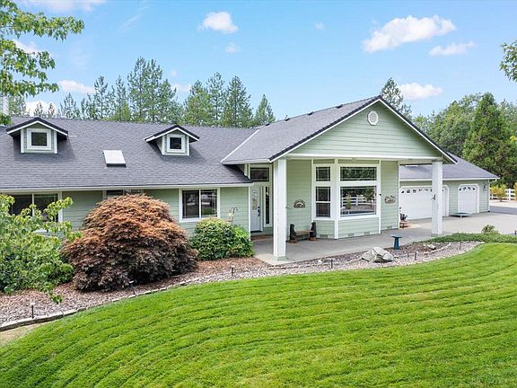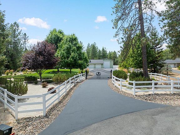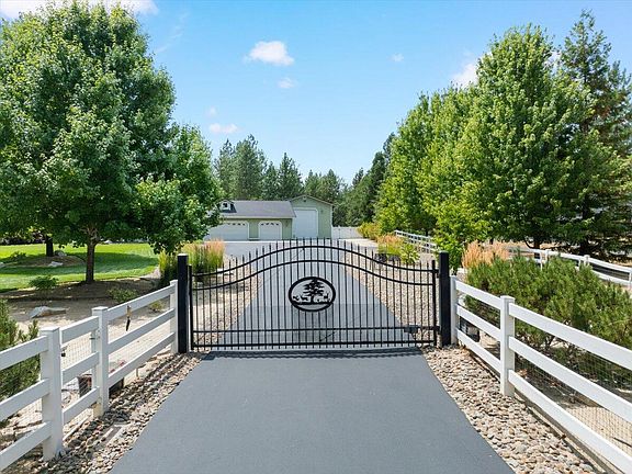 Nestled on 2.5 acres of fully fenced, gated, and cross-fenced paradise, located in a well established quiet neighborhood. This stunning 4-bed, 2.5- bath home has meticulously maintained landscaping with a serene water feature and a walking path through a Japanese garden. In a separate yard there is a fenced dog agility course. Enjoy an abundance of natural light and vaulted ceilings throughout the home. The newly updated kitchen and flooring throughout add a touch of modern elegance. The expansive primary suite features a fireplace, large walk-in closet, a Jacuzzi tub, walk-in shower, and private access to the back patio, perfect for soaking in the hot tub and enjoying the beautiful backyard and night skies. With a large 3-car attached garage and a detached 24x40 RV garage & shop, there's ample space for all your needs. Plus, the whole house generator ensures you're never left in the dark. This home offers the perfect blend of luxury, comfort, and functionality.