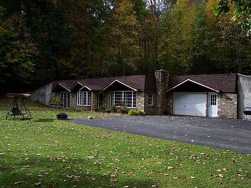 Unique mountain home where "Mother Earth" plays a part. Tucked into the hillside, on over 11 acres just miles from Seven Springs & Hidden Valley Resorts, you will find peace & quiet. This 3 bedroom homes has a 2nd living room & den, which could also be additional sleeping space. Open Dining & Living Area allows for everyone to be together. The Atrium in the back of the house provides natural sun light & the roof top is "earth" which keeps the house heated. Oversized 2 car garage and more,You much see.