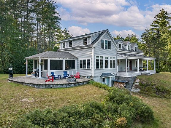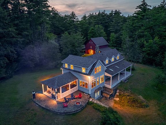 Welcome to Bailey Point, peacefully resting on a picturesque 6-acre peninsula, offering over 1000 feet of waterfrontage, providing an unparalleled sanctuary. Impeccably restored, this charming 3-bedroom farmhouse exudes timeless elegance and offers endless opportunities. Wide pine floors and exposed beams showcase the historic character. Discover built-in shelving, an inviting entryway, and a stone fireplace that adds to the charm. The kitchen impresses with tall custom cabinets, a walk-in pantry, and ample storage space. The farmers' porch, a perfect spot to savor morning coffee while taking in the breathtaking views of the water. Feel the embrace of nature in the enclosed porch, a space that invites you to unwind and connect with the outdoors. Outdoor living has endless possibilities with a private dock awaiting your waterfront adventures, while a cozy sleeping shed by the lake beckons for lazy afternoons by the water. Enjoy dining on the outdoor patio, gather around the firepit under the starry sky, or tend to the raised garden beds. Additional amenities include an insulated walk-out basement, central AC for year-round comfort, & a whole-house generator for peace of mind. The detached barn with a sturdy Steel I beam. Experience the tranquility and charm of Bailey Point, where modern comforts meet rustic elegance in a harmonious blend of nature and luxury. Your waterfront retreat awaits.