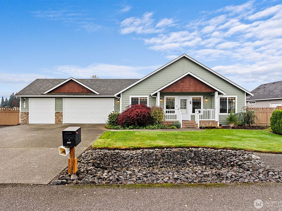 Discover your slice of paradise in this stunning 3-bedroom, 2-bathroom home in prestigious Newaukum Village Golf Course Community. This 1,728 square foot gem features open concept design with gorgeous cherrywood hardwood floors adding warmth throughout. The primary bedroom offers tranquil retreat space while additional bedrooms provide flexible living options. The spacious corner lot boasts exceptional outdoor living with fully fenced yard, patio, and deck complete with remote-controlled awning for effortless entertaining. Amazing landscaping showcases mature fruit trees and charming gazebo, enhanced by efficient sprinkler system. The impressive 3-car garage provides ample storage and parking.