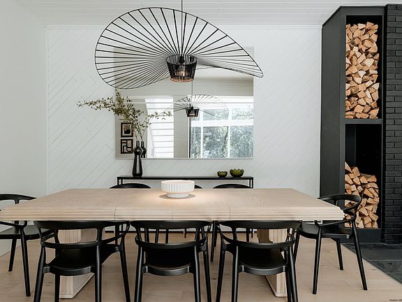 Tucked away amidst the serenity of 4.4 beautifully wooded acres with mountain views, this fully renovated home in Barryville beckons you to a life of style and tranquility. Offered fully furnished, with each piece having been curated with care and elegance, it is fully turnkey and ready to go! The expansive living and dining area is stylish and bright with oak flooring that melds with white plank walls and ceilings to give an airy, open feel. The unique wood-burning stove, sitting elegantly against a statement brick wall, is complemented by shelving for storing a winter's worth of firewood. Picture yourself cozying up to its warmth as snowflakes dance outside. Natural light floods the living room through a grand set of sliding glass doors, opening up to the front patio and framing the impeccable mountain view. The seamless flow continues into the well-equipped kitchen, boasting ample counter and storage space, a central island, and top-notch appliances, including a drawer microwave. Culinary enthusiasts will love the kitchen’s access to the covered patio, lined with a garden perfect for fresh herbs, all set against the backdrop of the mountain in the distance. The main level also offers a spacious laundry room and a full bathroom featuring a glass walk-in shower and an exquisite cedar sauna for relaxation and rejuvenation. Upstairs are four spacious bedrooms including the primary suite which is a sanctuary in itself, boasting a vast picture window that embraces the view and an en-suite bathroom complete with a double-sink vanity and glass walk-in shower. Three additional bedrooms and another large bathroom with a soaking tub promise comfort and elegance. But the true heartbeat of this home is the expansive family room. Ideal for lounging, watching TV, dining, or enjoying a game night, it even boasts a wet bar with a refrigerator. Numerous sliding glass doors capture the mountain view and provide access to the inspiring wrap-around deck, an idyllic space for alfresco dining or simply soaking in the surroundings. The home has been fully renovated and improvements include new kitchen, bathrooms, finishes throughout including engineered oak flooring on the main level as well as a new roof, plumbing, electrical, mini-split units, landscaping, and so much more! Location is paramount, and this property delivers. Just a short drive to the village in Barryville with its renowned farmers' market, and 25 minutes to popular towns like Port Jervis (with Metro North station for easy transport to NYC), Bethel, and Narrowsburg. You’ll be minutes to the Delaware River and an abundance of recreational opportunities including rafting, kayaking, fishing, and hiking. Plus, it is a mere 1.75-hr drive to NYC!