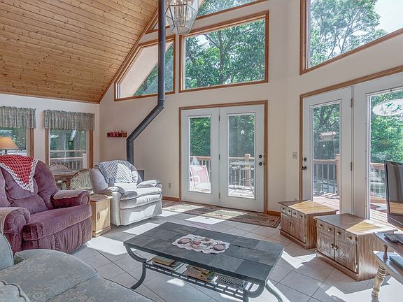 Private location with a view!! This home is nicely located at the end of the road, surrounded by trees with a great level yard & garden spot. Drive up around the back and enter into the main level master bedroom, park in the garage and enter into the lower level or enter upstairs from the wrap around deck. As you enter the living room opening to the kitchen & dining area, the cathedral ceiling and wall of windows let in amazing natural light and mountain views. The kitchen has a great eat-in breakfast bar and ample storage. Large deck for grilling, relaxing and taking in the fresh mountain air. The master bedroom, bath and laundry are also located on the main level. Upstairs would make a perfect place for guests with a bedroom & full bath, loft area perfect for a seating area, office or reading nook with an incredible view. Head downstairs to the family room, bonus room that could be used for additional living space and 3rd full bath. Downstairs has outside access and a door to the garage as well. Out buildings for additional storage.