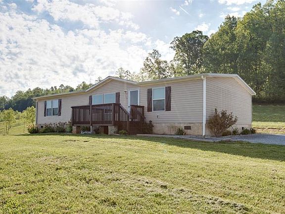 Beautiful 2013 3 bedroom 2 bath double wide on permanent foundation that overlooks 6.72 acres. Home has open concept with Living area and Large Kitchen with island. All bedrooms have walk in closets. Master bedroom with large tub in master bath. Gorgeous deck on back with Private and partial woods. Fencing will stay, but Items that do not convey with property are carport, solar power electric fence energizer, all electrical gate system, gate, and solar charge panel and key pad on gate, All feed troughs, all watering troughs, gun safe, dog house, and curtains and valance in master bedroom.
