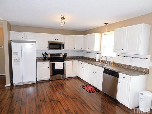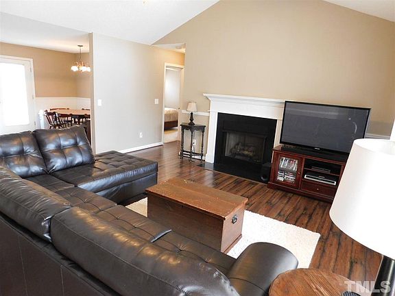 Beautiful open split bedroom floor plan! Home features huge living rm w/ gas log FP that opens into large kitchen/ dining area; Kitchen offers stainless steel appliances & ceramic tile backsplash; Laminate hardwoods throughout living areas; Large master bedroom offers large bath that features double vanity, sep. garden tub & shower, & Walk-In Closet; Exterior features concrete wrap-around front porch, deck, & gutters; Beautifully landscaped; Covenient location mins from Fuquay! Showings start 4/11/18!