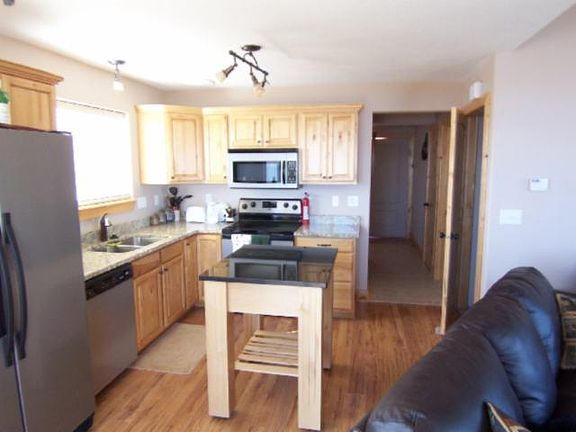 Great views of Bear Lake from back deck. Never lose views, year round access just like new. Solid pine doors, granite counters, Propane heat, central air. Association fee of about $575 per year for club house, golf course, and beach access. Agent owned
