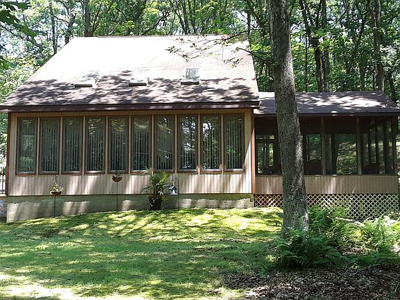 Come see this ideally positioned 4 bedroom saltbox with Views of Fawn Lake. Cathedral ceilings, skylights and a wall of over-sized windows fill the open layout with an abundance of natural light. Hickory kitchen cabinets. New kitchen flooring. New roof. Walk to lake access. Escape to the redwood screened in porch when you need a little peaceful solitude. Entertain, bbg or catch the sunset on the large deck area. Circular driveway. Two lakes, beach/beach cafe, club house, gym, indoor/outdoor pools, tennis courts, mini-golf & more. Close to the historic towns of Hawley/Honesdale for dining & shopping. Minutes to Big Bear for skiing and the Lackawaxen and Delaware Rivers for tubing and Kayaking. Nearby-Montage MT, NY Yankees AAA games, concerts at Bethel Woods, Kalahari, & Woodloch Spa