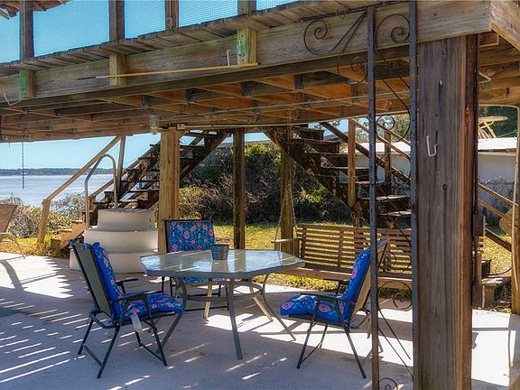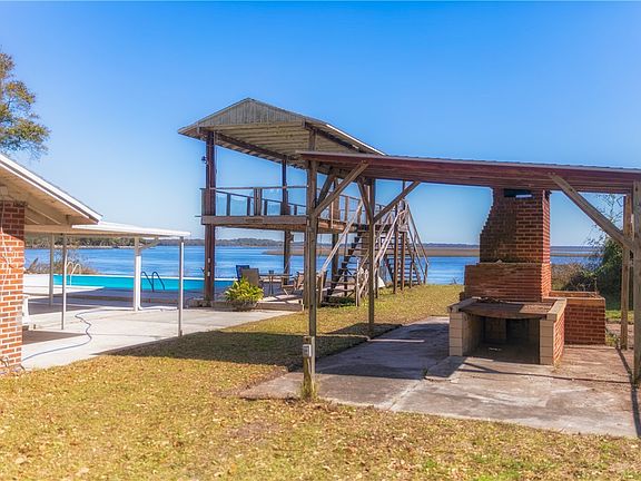 A Fisherman’s Paradise! 1352 sq ft 2 bedroom 1.5 bath full brick ranch on true bluff-style deep water! This adorable fishing cabin has warm heart pine throughout and encompasses what living on the river is all about. Take a dip in your massive 20'x 38' in-ground pool, with diving board and slide, right on the banks of Crooked River. Or cast your rod for the catch of the day from the backyard. Enjoy it as a weekend getaway or wake up to this beautiful sunrise everyday. City water without the city tax! Natural gas is available and there's a separate well for irrigation. Being sold “as is” this diamond in the rough is waiting to be polished! Cash or conventional financing only.