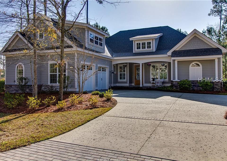 Newly built Lowcountry home in the exclusive Riverbend area of Sun City. Many high-end upgrades with elegant finishes. Open living area with 12 ft. ceilings, built-ins surround the beautiful stone gas fireplace. Gourmet kitchen with solid wood cabinets. Crown molding and trims throughout. Hardwood floor in living areas. Home features 3 BR, 3 BA, screened-in wrap around back porch. Each guest bedroom has its own ensuite with handpainted sinks. Marble tile in all baths. Fantastic wrap around screened porch off guest/GR/MBR! Too many extras to list. If you are a discerning Buyer, this home is for you!