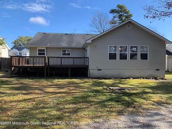 Come tour this beautiful style Ranch in desirable neighborhood of Little Egg Harbor. Ready to move in. This 3 bedroom 2 full baths will not last. Ceramic tile throughout with new carpeting in the bedrooms. Large living space with cornered fireplace. White kitchen with black appliances with an open seating area. Huge back yard with wood deck, with a wheel chair ramp and detached shed.