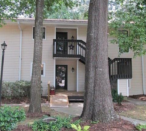 Main level condo in great location, just off of Country Club! Offering two bedrooms and two full baths, Handicap ramp onto front porch sitting area, Nice back deck - backs up to woods, Storage closet on deck, New flooring in Kitchen, All kitchen appliances remain, Look through into Living Room, Pantry, Large Living Room/Dining Room combo, Master Bedroom with double closets, Newer Windows, Heat Pump approximately 5 to 6 years old(per seller), Neighborhood Pool & Tennis Courts, HOA includes water & sewer