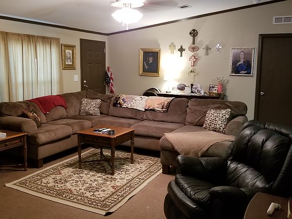 To be moved. Oak Creek Crown Manor. Has tape and textured walls and a fire place.
