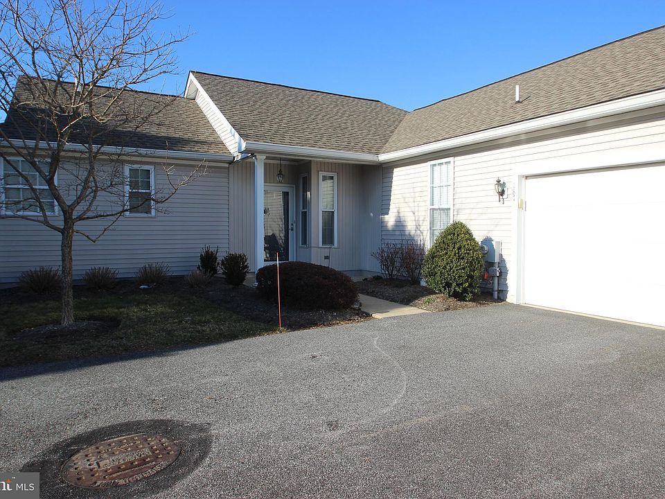 Welcome to this two bedroom Susquehanna model in the desirable Fox Hill Farm a beautiful 55+ Community. Enjoy activity-filled days at the resort-style clubhouse which offers a swimming pool, tennis court, bocce court, game room, arts and crafts room as well as a library and central gathering room for parties and socials. Around the community trails abound for walking, jogging or bicycling. This well kept Carriage house has a spacious primary suite with large walk in closet and primary bathroom with a soaking tub, two sinks, and stall shower. The open floor plan has numerous possibilities to fit your needs. The Living room and dining room combo could also be the ideal location for a home desk or quiet reading nook by the front windows. The two sided gas fireplace between the living room and breakfast area will add warmth and beauty. Your large Kitchen with electric stove, refrigerator, dishwasher, garbage disposal and pantry features an abundance of cabinets and slider to the private patio. Just steps away features your spacious second bedroom with double closets and full second bathroom. The Laundry Room with newer washer and dryer leads directly into your 1 car garage. The heater and ac was installed in 2017 and Hot water heater in 2023. Don't miss out on the beautiful home.