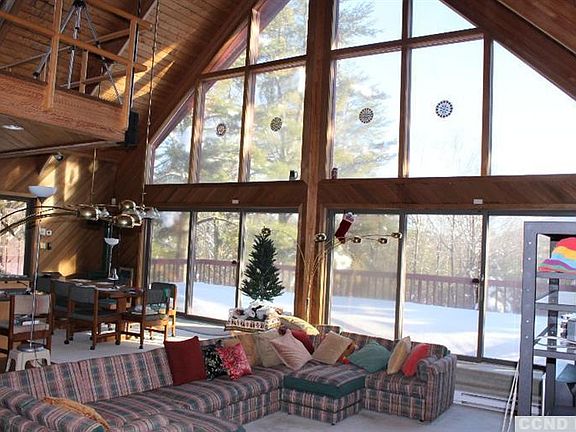 Find your very own winter wonderland less than 10 minutes from both the Windham and Hunter Ski Resorts. This cozy ski chalet was designed with quality, function and entertaining in mind. Step inside and you'll find a sprawling great room with vaulted ceiling. The fireplace blazes with a a unique fieldstone wall backdrop serving as the room's focal point. The kitchen offers custom white oak cabinets and avonite counters. take in views of Hunter's ski slopes from all main living areas. The third floor is reserved as the master's private sanctuary. The master's fireplace, asian inspired master bath, hot tub and sauna sets the ambiance for romance. The built in garage has been converted into a fabulous game room which could serve as additional sleeping or bar room. 5 acres consisting of private hiking trails and pond completes the package. Found less than 2 1/2 hours from NYC and priced well below assessed value makes scheduling an appointment to see this home a no bra