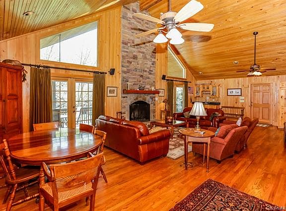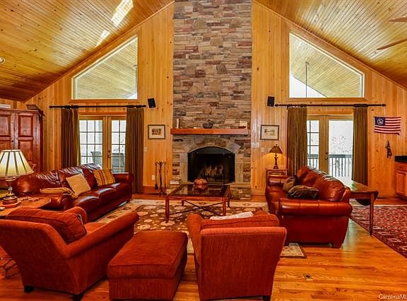 Custom Built chalet style 2700 square ft lake home with full length covered porches, massive stone fireplaces and oversized double boathouse is sure to wow you with its large rooms and open floor plan along with its soaring 18 foot ceilings. This low maintenance built home means you can spend more time playing and less time working! Comes fully furnished ready to enjoy.....less than 5 minutes to Ingles grocery.