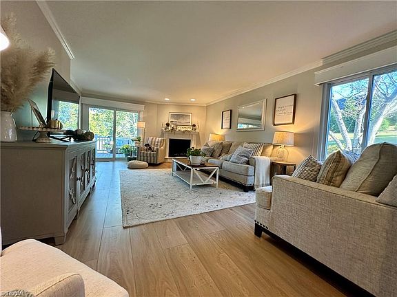 Welcome to 187 Golfview Dr, a stunning 4-bedroom, 4-bathroom condo situated next door to the main clubhouse putting greens and driving range at Bermuda Run Country Club. This exceptional property offers a rare opportunity to experience luxury living amidst panoramic views of the golf course (#18 hole in the backyard; #9 green; #1 Tee Box). Recent updates include a new roof, LVP flooring, interior painting (2023), modern light fixtures throughout, two electric fireplaces, Deck & Covered Patio (2022), Bright Kitchen with tumbled brass hardware, double ovens, built-in refrigerator, and ceramic cooktop (2023). The condo's ample closet storage accommodates the needs of a family's dynamic lifestyle with one bedroom/full bath on the main level; two bedrooms/two bathrooms on second floor; and a fourth bedroom/4th bathroom in the basement. Secure Gated Community with 24 hour Security, pool, tennis/pickleball courts. Membership Optional. HOA dues $235/month include Water/Sewer. Home Warranty.