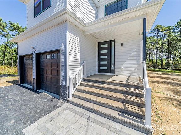 For sale: Welcome to 187 Grand Central Parkway, Bayville, NJ a stunning brand-new custom home offering the perfect blend of modern elegance, comfort, and convenience. This beautifully designed residence features 5 spacious bedrooms and 4 full bathrooms across 2,600 sq. ft. of living space, all set on an expansive 11,000 sq. ft. lot. From the moment you step inside, you're greeted by an open-concept floor plan with 9-foot ceilings, rich hardwood flooring, recessed lighting, and a warm, inviting electric fireplace that serves as the centerpiece of the living room. Sliding doors lead to a deck overlooking the park-like backyard, perfect for entertaining or relaxing in nature. The heart of the home is the designer kitchen, showcasing quartz countertops, sleek cabinetry, and premium finishes that seamlessly flow into the dining and living areas. A first-floor bedroom with an adjacent full bath provides flexibility for guests or multi-generational living. Upstairs, you'll find four generously sized bedrooms, including a luxurious primary suite with its own modern en-suite bath, along with two additional full bathrooms and a convenient laundry room. Bathrooms are finished with elegant porcelain tiles, giving the home a fresh and sophisticated style throughout. Additional highlights include a full 1,090 sq. ft. basement ready for your personal touch, a two-car garage with paver driveway accommodating up to six vehicles, a brand-new septic system, and multi-zone HVAC for energy-efficient comfort. Ideally located in Berkeley Township, this property offers easy access to the Garden State Parkway, schools, shopping, and the Jersey Shore's recreational attractions. With its sleek curb appeal, modern finishes inside and out, and spacious layout, this home is the perfect opportunity to enjoy new construction living at its finest.