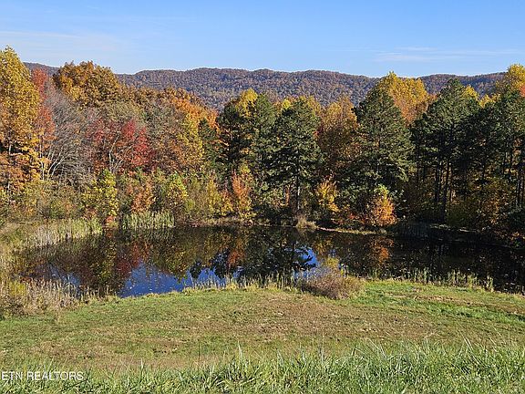 Escape to serenity in this one-of-a-kind mountaintop home offering breathtaking panoramic mountain views with total privacy on 23 wooded acres with pond. Located in peaceful East Tennessee, this tranquil setting is idea for rest, relaxation or working remotely-with fiber optic internet available. From the moment you step inside, you'll be captivated by the wall of windows showcasing the mountain views visible from both the interior and expansive Trex deck. The home's design features a vaulted ceiling, two story stone fireplace and tongue-and-groove pine plank walls that bring the outdoors in. The kitchen is appointed with Silestone countertops, custom cabinetry, stainless steel appliances and propane cooktop with components. The main-level primary ensuite offers a big walk-in tile shower, walk-in closet, laundry area and dual vanities. Engineered hardwood and custom finishes run throughout the home. The lower level is designed for relaxation and entertainment, boasting a wet bar, an antique Schrader wood stove, a dedicated office, a theater room and a utility room. The home offers zoned HVAC for year-round comfort as propane services the main and lower level, while heat pump efficiently manages the upper level. A private well supplies the homes and is equipped with two filtration systems. A detached studio or workshop offers heat, air and water. Come experience the tranquility and natural beauty of this mountain retreat-your private escape awaits you.