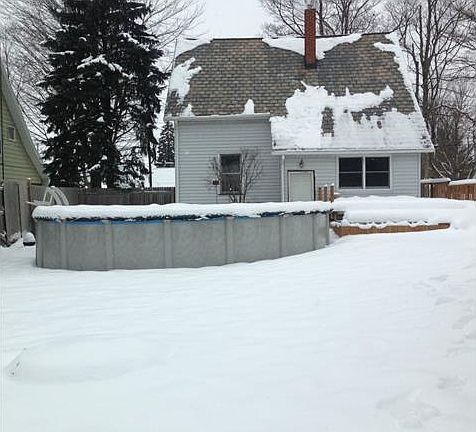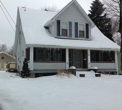 Lakeview Schools, quiet & quaint street. This home needs a new owner! Updated eat in kitchen with ceramic tile & a beautiful view to fenced back yard/deck/pool. Dining room with Kraftmaid built in shelving leads to big open living room with hardwood floors. Screened in front porch to enjoy warm summer evenings. 3 bedrooms, newer interior & exterior doors, and molding. Some updated windows. Bathroom is updated but still has the claw foot tub with shower. Bonus room on third floor is finished for extra storage, family room, game room etc. Basement has new glass block windows & partially finished with walk out basement door. 2 car garage, wooden privacy fence to enjoy the pool & deck & deep back yard.
