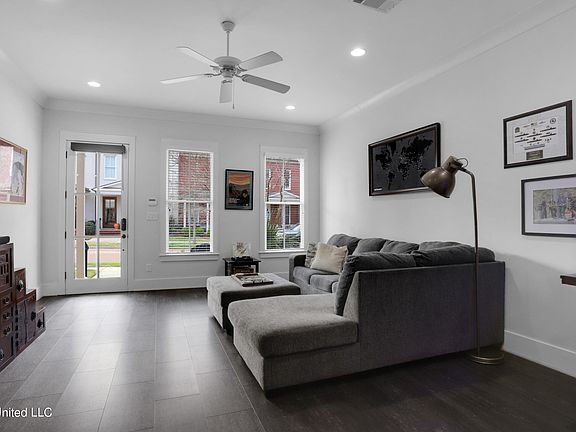 Sleek and sophisticated low-maintenance living in this fantastic zero-lot line townhome in the coveted Township at Colony Park. Just steps away from restaurants, shopping and entertainment, not to mention pickleball, tennis, swimming and workouts at The Club at the Township where property owners get a discount. This 2 bedroom, 2 ½ bath home boasts crisp white walls and an open plan that lends itself to effortless entertaining as well as easy everyday living. The living area is spacious and inviting with white walls and high ceilings. A white quartz waterfall island provides extra prep space in the well-appointed kitchen. Custom cabinetry, under cabinet lighting, GE café stainless appliances, a pantry and a breakfast bar round out this flexible, functional space. A dining area overlooks a courtyard that will serve as the perfect spot for grilling or morning coffee. Set the mood in the courtyard with multiple color lighting options while listening to your favorites on Bluetooth speakers built into the ceiling fan with retractable blades. Upstairs the primary suite offers plenty of natural light as well as a spacious bathroom with two sinks, granite countertops, a spacious walk-in closet with built-ins, a tub with tile surround and an expansive tiled walk-in shower. The guest room features a spacious walk-in closet as well as a tiled tub/shower combo in the guest bath. The well-organized garage boasts two storage areas as well as a thoughtfully designed built-in workspace with peg board storage system that will delight the DIYer as well as weekend hobbyists. Guest parking is located just beyond the garage. This property boasts so many features and provides the perfect solution for busy individuals who desire the ease of townhome living and the freedom from yard maintenance, not to mention the convenience of this central location - just minutes from the Natchez Trace, the interstate, the Ridgeland Multi-Purpose Trail, the Reservoir and so much more. Call your realtor today to see what carefree living this Township townhome offers.