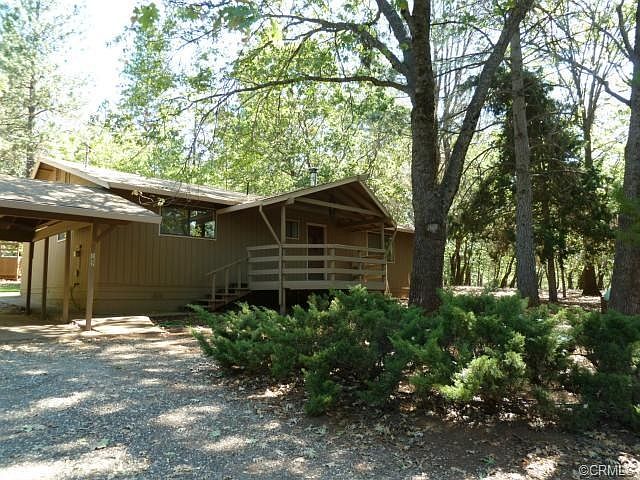 Rural, end of lane setting, with peaceful oak forested view! Large covered front deck for you to enjoy with this 2 bedroom, 2 bath home with new paint, carpets and vinyl throughout! The kitchen has a breakfast bar and pantry. There is an efficient wood stove on a brick hearth plus central heat and air that was replaced less than 5 years ago. An evaporative cooler is still in place but not connected or used at present time. Both bedrooms are good sized with large closets. The master bedroom has an on suite bath with tub/shower. You'll love the oversized laundry room with utility sink and room for sewing, an office or hobbies. If you love to garden, there is plenty of room with a lawn area in the back yard and room for fruit trees. There is an attached 2-car carport plus an extra deep 2-car garage that is used as a 1-car with a framed in shop. A detached deck in the back is nicely shaded in the evenings. The property is surrounded by tall oak trees with a few pines and is your perfect wooded wonderland, offering privacy at the end of a quiet lane.