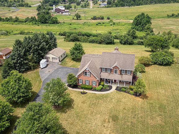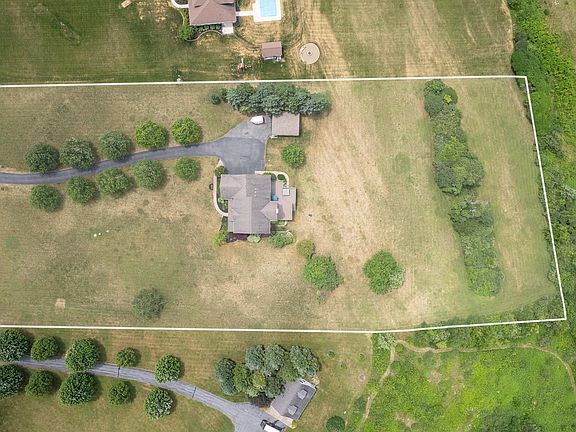 Situated on a peaceful 4+ acre lot, this stunning DeHaas built home provides amazing views and allows horses (2), all while being close to the town and campus. This 5 bedroom, 3.5 bath home boasts a grand entry with vaulted ceilings that flow into the spacious great room, a sprawling deck complete with a relaxing hot tub, and a finished walk-out lower level with a cozy bedroom, full bath, and expansive rec room featuring a gas fireplace. Hardwood flooring graces much of the interior, while a wood-burning fireplace adds warmth to the great room. The large owner's suite includes a bonus area ideal for a study, sitting room, or exercise space. The kitchen is a chef's dream, featuring a generous island with seating, stainless steel appliances, elegant granite countertops, a stylish tile backsplash, and ample storage. With an oversized three-car garage and a detached two-bay garage, this property is perfect for enthusiasts with a collection of vehicles or recreational equipment. This exceptional property truly stands out in our market!