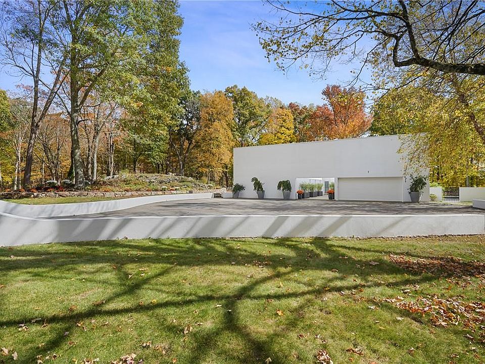 The house features a new facade by AIA award-winning architect Belmont Freeman and newly redesigned grounds with elegant stone walls and terraces, beautiful plantings and direct access to the famed Bedford Riding (and walking) trails.