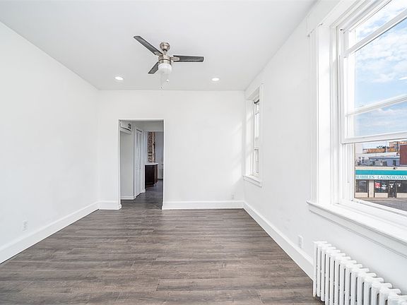 *No Broker Fee*. Renovated one bedroom apartment on second floor. South facing windows give lots of natural light and view of Journal Squared Towers. Kitchen features quartz countertops, subway tiled backsplash, breakfast bar with additional cabinets for storage, exposed brick, stainless streel gas stove, microwave and refrigerator. Large living room with hardwood floors, LED high hat lighting and ceiling fans in both the living room and bedroom. Bathroom has marble and glass shower with drop down ceiling rain head shower, decorative tiles and window with exposed brick. Landlord pays heat and water/sewer. Located in Jersey City Heights, short 5 blocks from Journal Square PATH. Close proximity to NYC Transportation, Journal Square, Bus, Central Avenue Shopping & Dining, Pershing Field Park, Riverview Park, 100 Steps to Hoboken and Much more Ideal for a single professional or a couple. Available Now! *No Broker Fee*