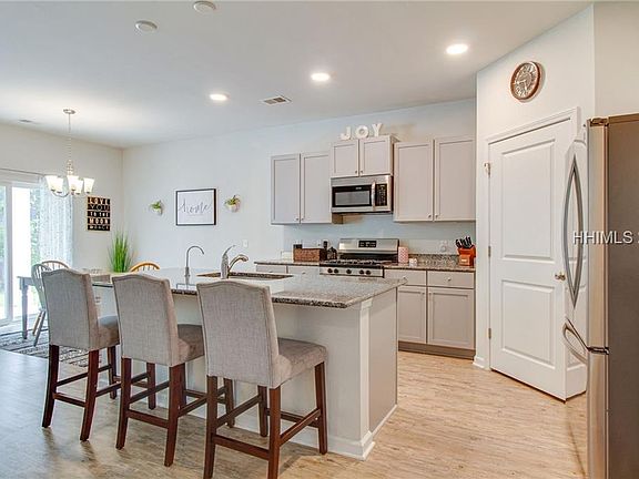 Why build new? 5 Bed/3.5 Bath/Loft/Office/Optional 6th bedroom 2018 ELLE MODEL with beautiful private, wooded views is ready for you. The options are endless in this spacious home. Large 1st floor owners suite, open floor plan, kitchen with gray cabinets, gas range, LVP floors and huge granite center island great for entertaining! Enjoy your morning coffee relaxing on your covered porch. No need to buy a fence. Large privacy fenced backyard just installed last July. Neighborhood is a natural gas community & features a zero-entry pool, clubhouse, playground and 3.4 mile trail! Fast commute to SAV, HHI, Beaufort & May River High.