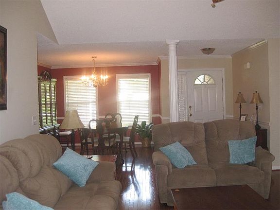 Adorable ranch on a full unfinished basement located in a highly sought-after Stockbridge location. Unique floor plan is designed around an amazing curb appeal with a nice flat lot. This 4-bdrm home has a generous-sized master bdrm w/en-suite bath & spacious closet. New tile floor in the master bath, hardwood in dining room, family room, hallway and carpet in all bedrooms. Lrg great rm has a pretty fireplace. The dining room flows beautifully into the kitchen and breakfast area that leads to a large deck. You can enjoy the view of the fenced backyard from the breakfast area, great room or deck. A/C and water heater are both 4 years old and roof is only 6 years old!