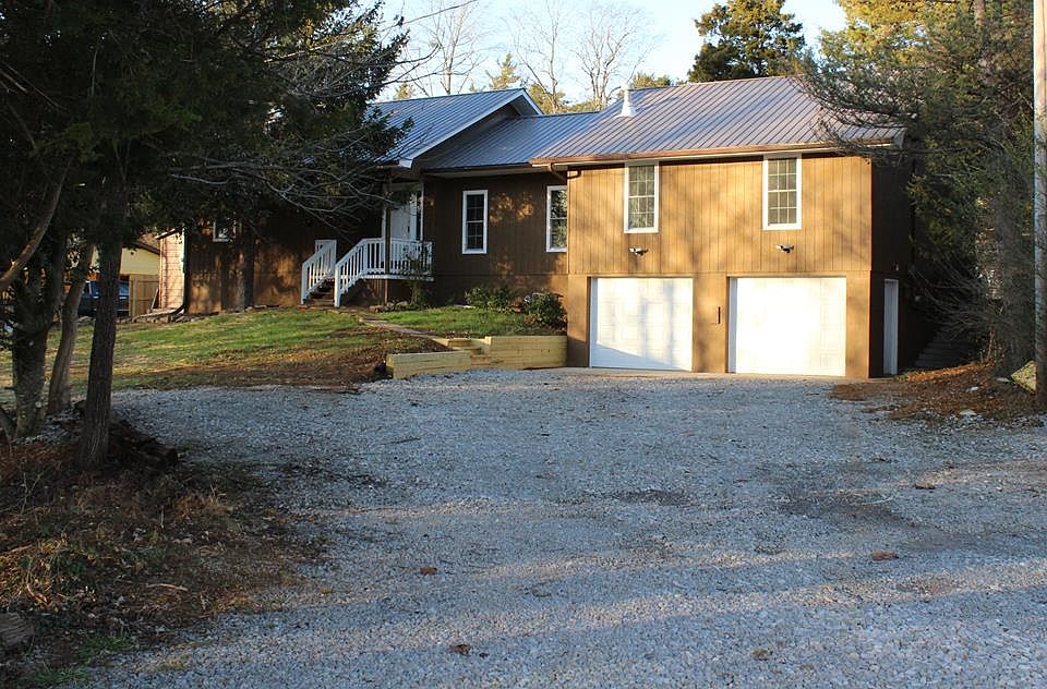 Completely remodeled home! Large living room, eat-in kitchen w/ new appliances. Hardwood floors, new windows,, new carpet. Master bedroom has 12' vaulted ceiling with gas log fireplace, walk-in closet and remodeled Master bath. 2nd bedroom has hardwood, gas log fireplace and french doors leading to 36' back deck. Full basement with 2 1/2 car garage. Seperate 20x50 metal shop, partial central heat and air. Fenced yard.