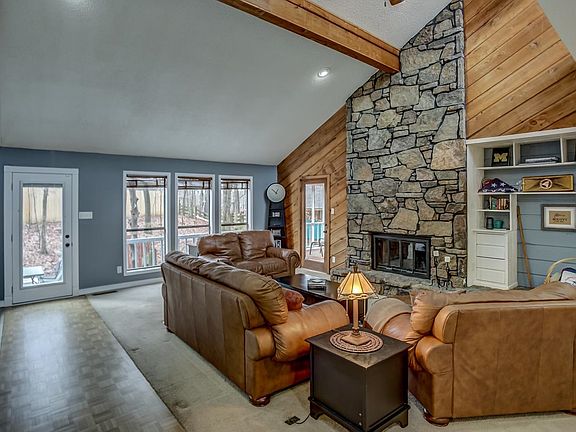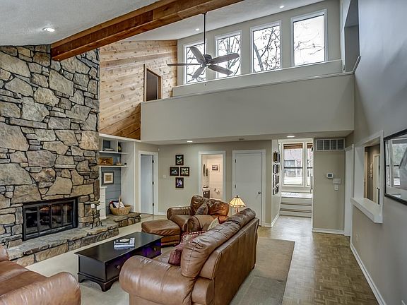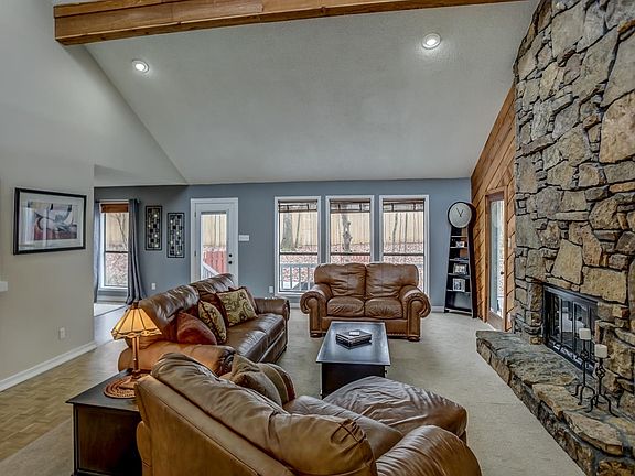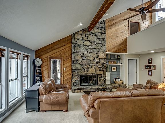 - Features: Fireplace, Vaulted/Coffered Ceiling, Hardwood Floor, Carpet