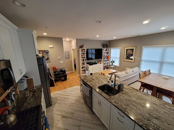 newly renovated.gas forced air heat and ac. hardwood floor throughout,and high end porcelain tile.. stainless appliances and gas stove. dishwasher and garbage disposal.. heat and fan combo in oversized bathroom with tub.. apartment comes with mounted 65 inch tv and internet.coin opp washer dryer in hallway. New high efficiency gas heat and ac. 1 off street parking spot.....a must see owner pays for water sewer, internet only... also provided is a 65 inch tv