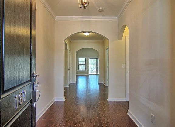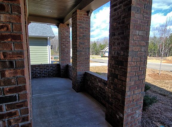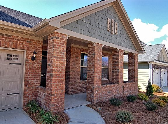 This two-bedroom, two-bath Craftsman-style brick home features an office, private wooded fenced-in back yard, architectural shingles, front yard irrigation and an inviting front porch! One-story luxury living with hardwood flooring that flows throughout the living areas. The open kitchen includes stainless appliances with gas range and a large island with granite bar top opening to the vaulted dining area and family room. The spacious master bedroom with large walk-in closet has access to the large covered rear porch. Master bath enhancements include a comfort-height double vanity and oversized five-foot tile shower. Enjoy maintenance free living at its finest!