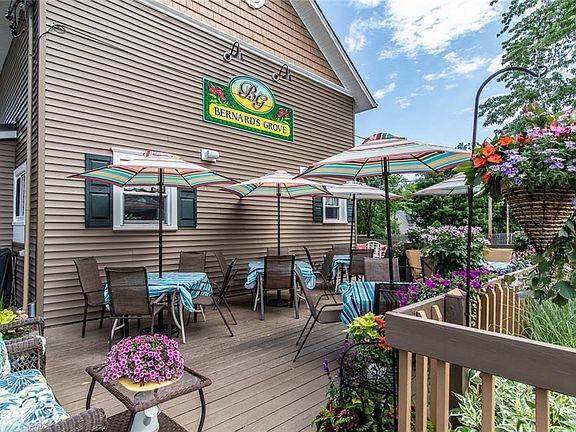 Well established restaurant/bar since 1996. Known as Bernard's Grove. First Floor is bar, restaurant seating approx. 72 people. Second floor is 2 large, 1 bedroom apartments. Outside seating on deck comfortably seats 24, lawn seating as well. Parking presently for 58 cars, more parking available if expanded to lawn area in front. 3 Car Block Garage. Building has potential for party house venue. Security System. 2 New hot water heaters. Equipment stays! Fully furnished complete with walk-in cooler & wine cellar. Fabulous gardens to accentuate your outdoor dining experience. Please do not visit without appointment! Do NOT speak with employees. Thank you!