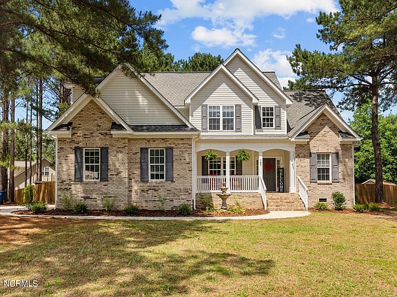 Stunning & fully refreshed with new flooring and paint throughout entire home this home is turn key and ready for new homeowners!! Featuring a primary suite on the main floor with two additional guest bedrooms upstairs, loft, and bonus room that could be used as an additional bedroom. Two story great room, formal dining room, and large eat in kitchen with granite countertops and stainless steel appliances. The Carolina Room, extended patio with hot tub and large fully fenced in backyard is perfect for entertaining. Two outdoor storage shed to store all you lawn equipment! This home sits on a large corner lot just over an acre and is conveniently located to New Century Middle School, Union Pines High School, and US-1. Don't miss your opportunity to make 187 Magnolia Hill Drive your new home! VA Assumable loan opportunity,