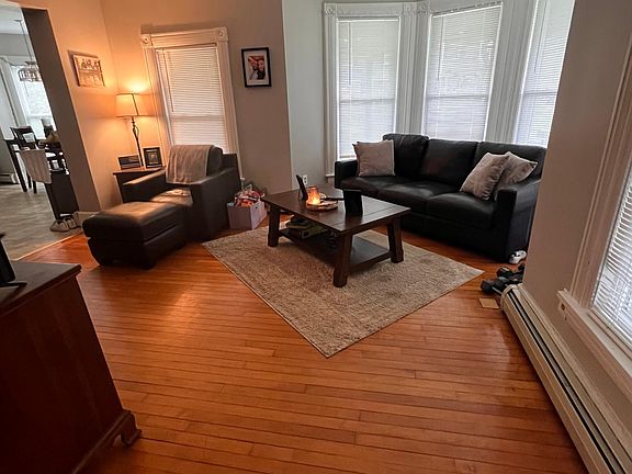 First floor apt in a beautiful victorian building. This spacious apartment currently has hardwood floors in the living room and master bedroom. Tenant is responsible for all utilities. Heat is oil. Lease is a 1 year contract that converts to a month to month after 12 months. Renter will need to provide a copy of credit score/background check for all adults. First month's rent and security are required at the signing of the lease. Rent is paid via on online app. This is a non-smoking and pet free apt. Parking is off-street. Owner is responsible for snow removal and outside maintenance. There is on-site laundry facilities that is paid via on online app.