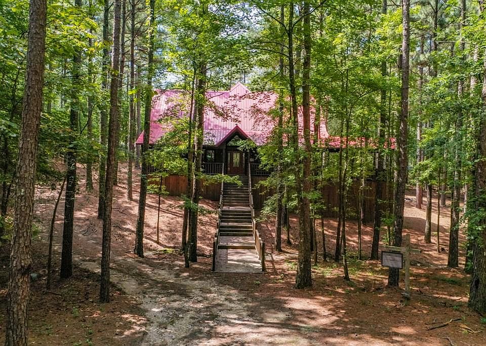 4 bedroom 3 bath log home for sale in Broken Bow Oklahoma. The Two story log home for sale is situated on wooded acreage on a dead end road. Property features include open concept with floor to ceiling fireplace. The master suit is located on the lower level of the home and 3 bedrooms are located on the upper level along with the game room. Outside porches wrap around the front ant the west side of the cabin. Enjoy the evening from the hot tub located on the side porch. Large stands of Pine trees and hardwoods surround this ideal vacation home. Property is being sold furnished.