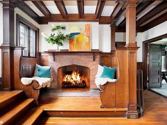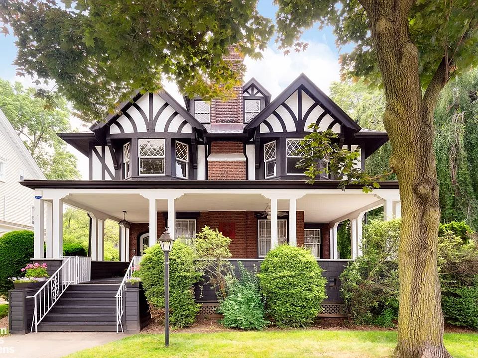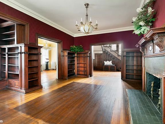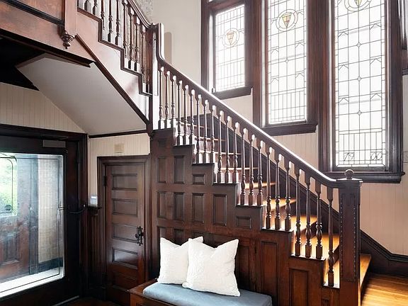 This massive, handsome home is rich with history and architectural flourishes. The original owner, Charles Stilwell, was an inventor and associate of Thomas Edison, in fact his sister married Edison. The house still features a decorative Gothic initial 'S' on the exterior chimney. Enter the house from the wrap around front porch, through the arched doubled doors, into a remarkable foyer that soars three stories high. A grand triptych of stained glass windows flanks the stairwell with a cozy inglenook at the base. The foyer, living room, library, and formal dining room are loaded with period details: bays, built-ins, fancy millwork, stained glass, original floors and trim, seating nooks, and four of the home's eight wood burning fireplaces. A rat-pack worthy wet bar, powder room, butler's pantry to the back stair, eat-in kitchen and enclosed sun porch complete the first floor. Five bedrooms, three full baths, and two shaving sinks are on the second floor. There is also a dainty boudoir with a Juliet window overlooking the foyer and several large versatile closets on the landing. On the third floor, a billiard room stretches the full width of the house, the landing features a large walk in closet and hundreds of square feet of unfinished attic space for storage or a new and creative purpose. Laundry, half bath, exercise space, bar, rec room and more storage are found in the full finished basement. The oversized 70 x 164 lot allows a double wide driveway for side by side parking; a gated rear yard with a stone patio and large lawn area; magnificent mature trees; and perhaps the loveliest outbuilding in Brooklyn, a stunning two-story Tudor carriage house, the interior of which is completely clad in original beadboard. If you've been waiting for something special, this architecturally and historically significant home is one of Prospect Park South's most important properties.