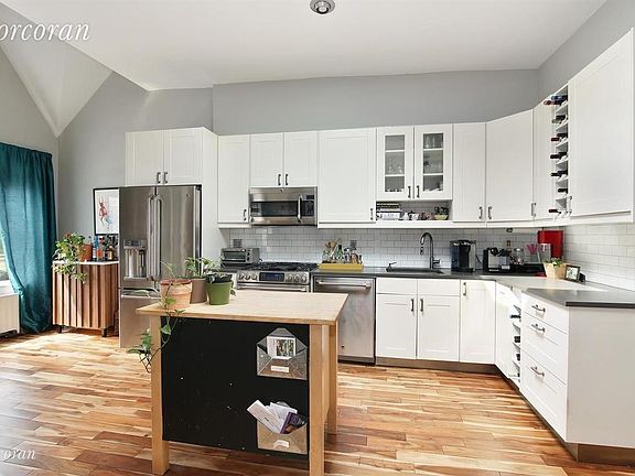 This spacious, sun-soaked apartment features garage parking and spacious garden perfect for summer BBQs. The gourmet-style kitchen boasts stainless steel GE Cafe Series appliances including a dishwasher. The living room is wired for surround sound providing a cinematic experience. Subway tile pops aginst thoughtful cabinetry with slow-close doors and hidden slide-out trash/recycling bins. The bathroom is a spa-like experience due to the skylight, floor to ceiling mirrors, Kohler computer controlled showers with auto-heating and 4 nozzles, stereo speakers, and heated flooring. The shower operates at the touch of a button with the Kohler digital shower with three body sprays. (please note: there is no bathtub but plenty of room for a kids tub to be used in the walk in shower) Separate from the main level, the garden-level office is the perfect place to get quiet work done while peeking at the garden. Huge (23x60ft) garden features a fire pit, waterfall pond, organic raised bed vegetable planter and thoughtful landscaping outfitted with drip irrigation system meaning a perfect garden with no effort. Outdoor speakers are controlled from the interior. Other important considerations include central air conditioning, closets outfitted with Elfa systems, brazilian hardwood floors and washer/dryer. Also, included is a garage and driveway that can hold 2 cars comfortably. Close to Ft. Hamilton Parkway stop on the F/G trains, coffee shops and Windsor Terrace restaurants. 10 minute walk to Prospect Park. Pets upon approval. This is a must-see unit!