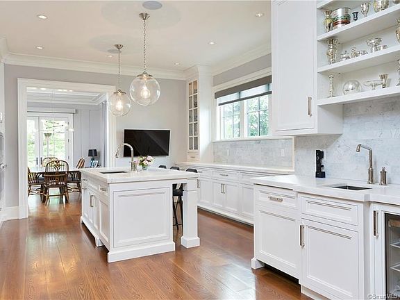 Unique opportunity in downtown Greenwich. Extremely rare double lot with recently constructed 5497 ft 5 bedroom main house facing on to Milbank plus 2 family 2340 ft cottage on a total of .37 acre with. Private gated entrance on Connecticut Avenue. 2 car garage plus parking for 6 more cars in your own secure courtyard. The rear units could be updated as a home office / guest house / gym or kept as their current use as an investment property.