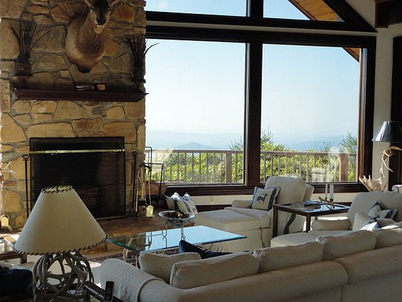 Perched atop Misty Mountain with panoramic breathtaking views from Johns River Gorge to Grandfather Mountain. This true mountain home has complete privacy and view control in a park like setting inclusive of 5 additional lots and gated drive. The walls of windows and massive stone fireplaces let you bring those breathtaking views indoors whether it's a beautiful fall day or Christmas time snow. The interior boasts a open floor plan, custom kitchen with granite and floor to ceiling cabinetry, elevator, skylights, wool carpeting, wood ceilings, mahogany built-ins, open master suite with Jacuzzi, steam shower, private deck and kitchenette.