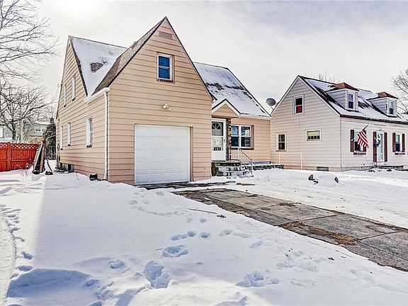 Best value in Greece! Almost 2000 sq ft inside of this adorable Cape Cod style home ~ 1st floor bdrm & updated full bath w/ stand up shower, plus 2 master sized bdrms on 2nd floor & a bonus rm (nursery, workout room, office) & a huge updated 2nd full bath w/ double vanity, ceramic tile tub surround & flooring ~ All brand new eat-in kitchen featuring white shaker cabinets, ceramic tile backsplash, & stainless steel appliances ~ Living/dining room combo, french doors to a beautiful enclosed porch overlooking the backyard ~ All new flooring & paint throughout ~ Full basement w/ new glass block windows ~ TONS of storage space ~ 1 car attached garage w/ new garage door & double wide driveway ~ low maintenance siding, fenced yard & more! Come see it!