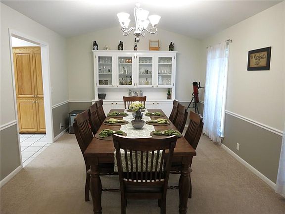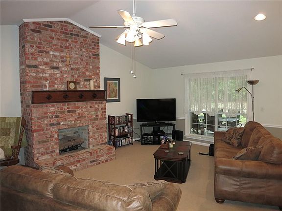 Well maintained home close to I-49. Large covered patio, storage building, nice landscaping. Large master suite with whirlpool tub and separate shower. Living room with cathedral ceilings and brick hearth. Separate formal dining room. Storage/Shop has 220 amp electric.