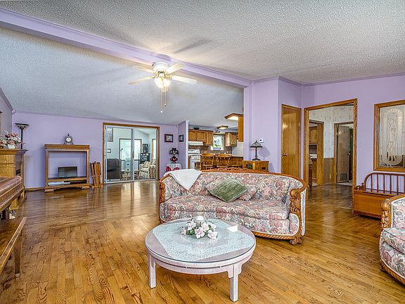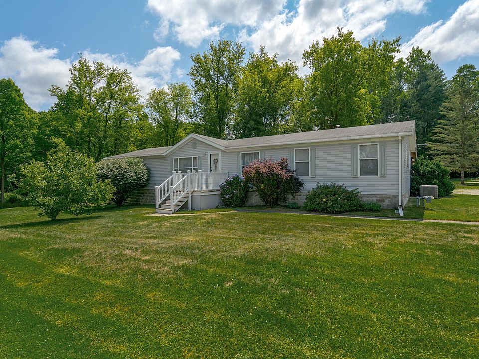 Back on the Market due to buyer financing... price reduction! Amazing private 2 acre parcel along Indian Creek is the setting for this large manufactured home. With 2,100 sq. ft the main floor features large kitchen, dining area, oversized living room, 4 season room, primary suite with private bath, 2 additional bedrooms and additional full bath. This immaculate home includes solid oak flooring, tile backsplash, fresh paint, gas fireplace and plenty of storage in the dry crawl space & 3 storage sheds. Furnace / AC unit are both 5 years old. This home has 2 X 6 exterior walls. Enjoy gatherings on the deck with a hot tub or a bonfire along the stream shore. Either way you will enjoy the tranquil setting. Call today for a private showing. Laura 269 217-3193