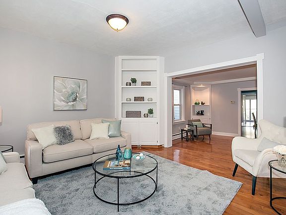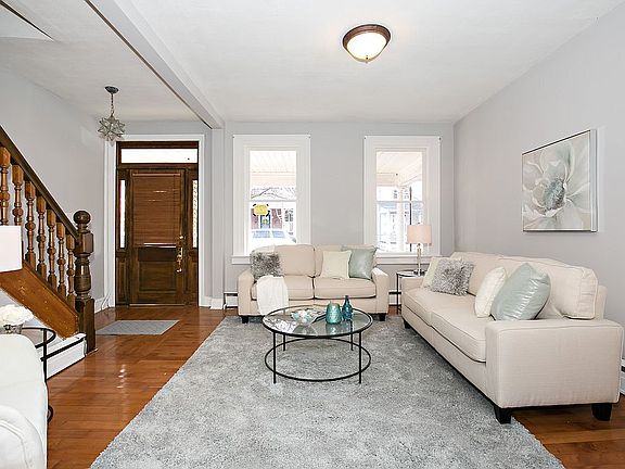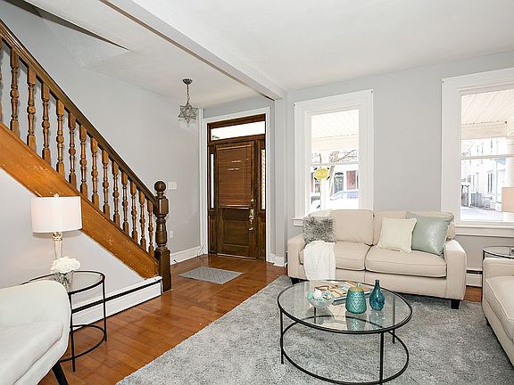 Large living space with built in bookcases, office space with built ins. Dining room Is perfectly sized with 1/2 bath. Nicely updated kitchen leads to newly landscaped yard with with garden perimeter. 2nd floor has three bedrooms and 2 baths with plenty of closet space. One bath has a large closet with washer/dryer hookup in place. Third floor has a large renovated bedroom and skylights with additional attic storage. All doors and windows were replaced in 2020. New heating system added and new electric.