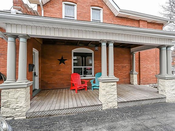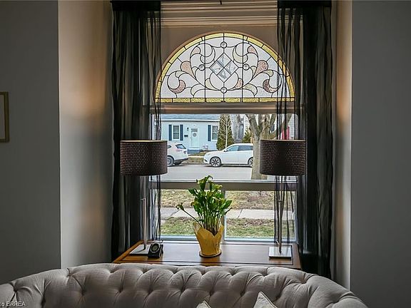A HOME SURE TO IMPRESS! This charming 2 Storey Century Home has been loving cared for and offers large principal rooms with refinished hardwood flooring, high baseboards, stained glass window, impressive original working pocket doors and trim. Many updates include newer windows, large impressive bathroom, Furnace and A/C replaced in 2014 and so much more. The main floor bedroom is currently being used as an office and the bright and spacious kitchen is accessed from the side door off the large, covered porch. The back yard has been landscaped, is partially fenced, and has a lovely back patio where you can enjoy the afternoon sun. A lovely neighbourhood with great neighbours! The detached garage has hydro and has been refurbished with an addition added to the rear. Such a lovely home, one not to be missed!
